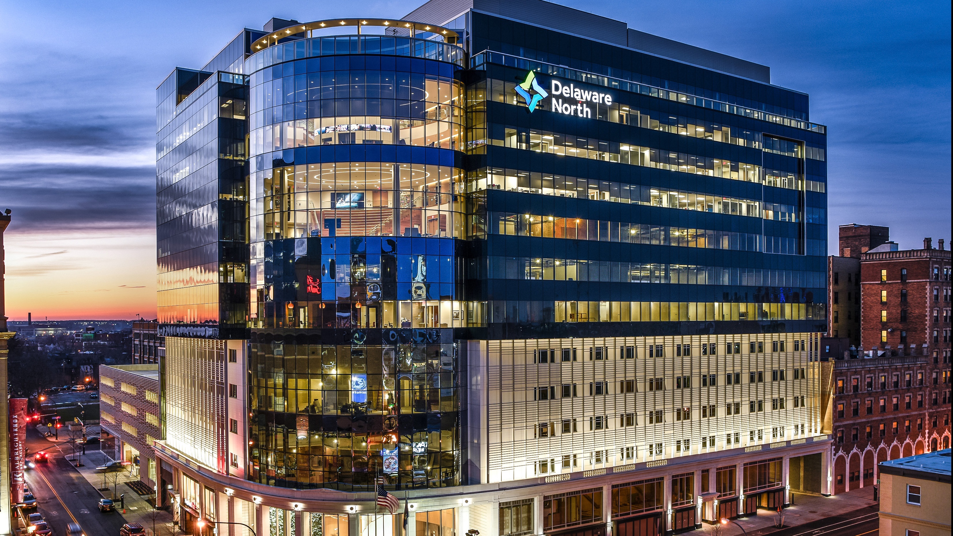 The Delaware North Building at 250 Delaware Avenue is an iconic structure at the intersection of Delaware Avenue and Chippewa Street in the Central Business District (CBD), and serves as the world headquarters for the Delaware North Corporation, a global leader in hospitality and food service. This stunning new building also contains a Westin hotel, Class A office space, retail, and an adjacent parking garage. The project’s design integrates the latest advances in environmental and energy conservation. The building also features a 7,000-square-foot courtyard and garden, providing an urban oasis in the middle of the city.