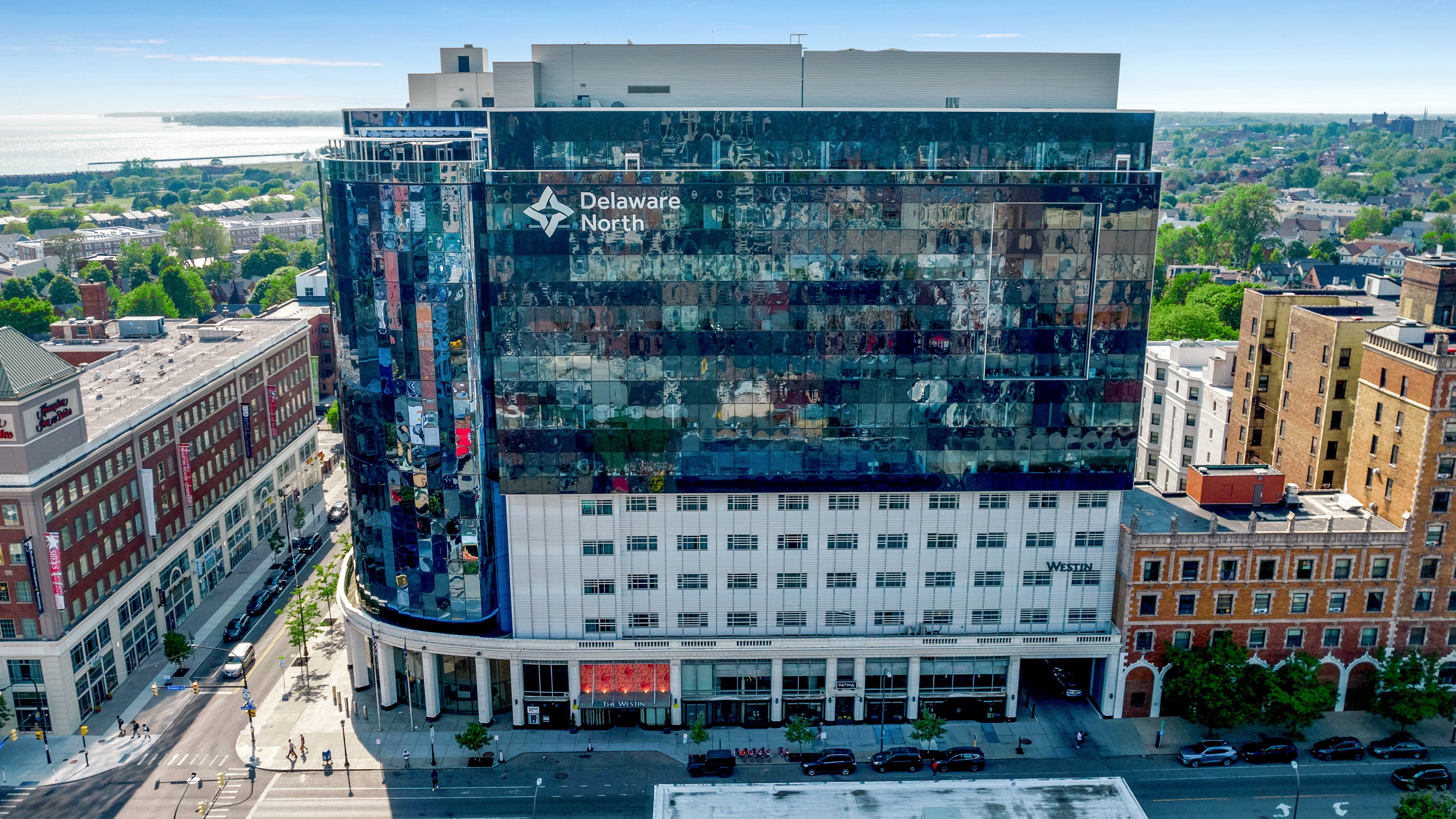 The Delaware North Building at 250 Delaware Avenue is an iconic structure at the intersetction of Delaware Avenue and Chippewa Street in the Central Business District (CBD), and serves as the world headquarters for the Delaware North Corporation, a global leader in hospitality and food service. This stunning new building also contains a Westin hotel, Class A office space, retail, and an adjacent parking garage. The project’s design integrates the latest advances in environmental and energy conservation. The building also features a 7,000-square-foot courtyard and garden, providing an urban oasis in the middle of the city.